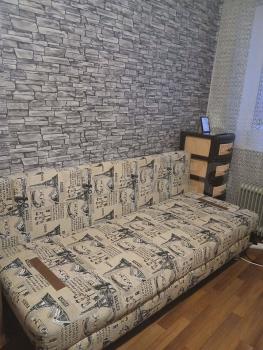 В комнате двуспальная кровать и диван (раскладывается и образует 2 спальных места). Диван на кухне так же раскладывается.