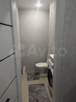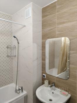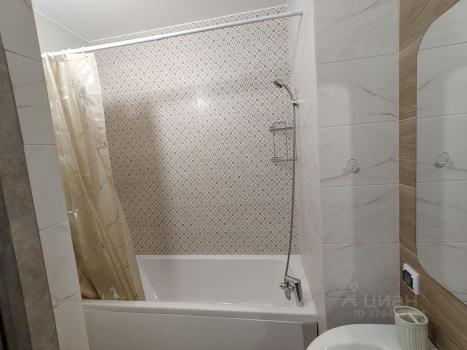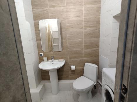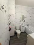 Санузел совмещенный, оформлен в светлых тонах. В подъезде есть грузопассажирский лифт, а также открытая парковка во дворе.