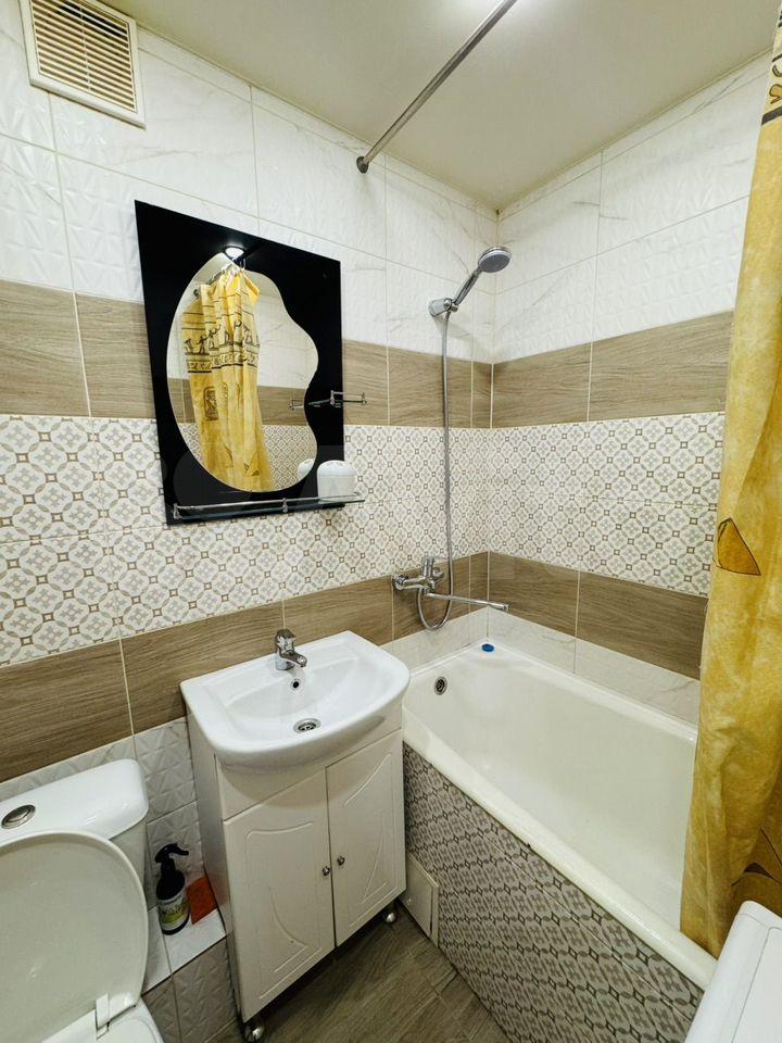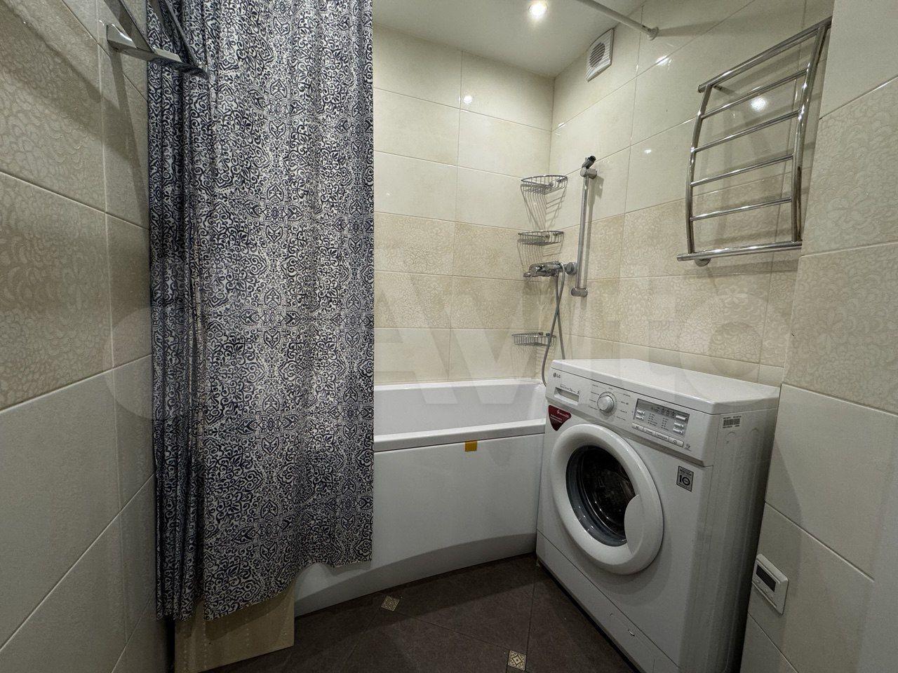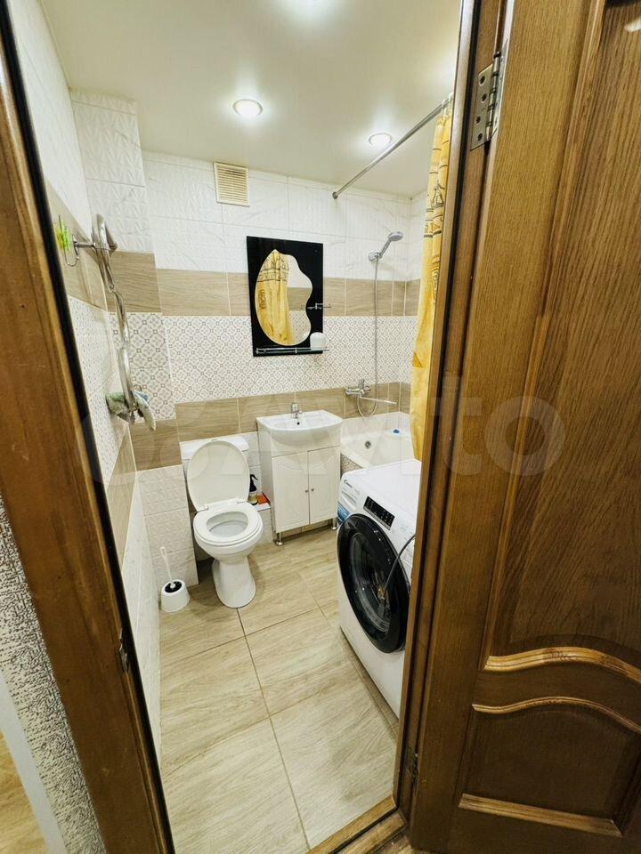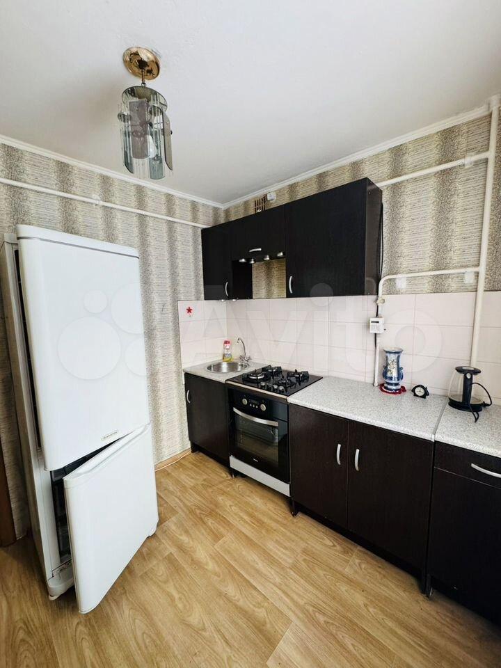 В квартире сделан косметический ремонт. В комнате и на кухне есть необходимая мебель для проживания. Кухня оснащена холодильником и стиральной машиной, что делает процесс готовки и ухода за вещами удобным. Санузел совмещенный, оборудован ванной.
