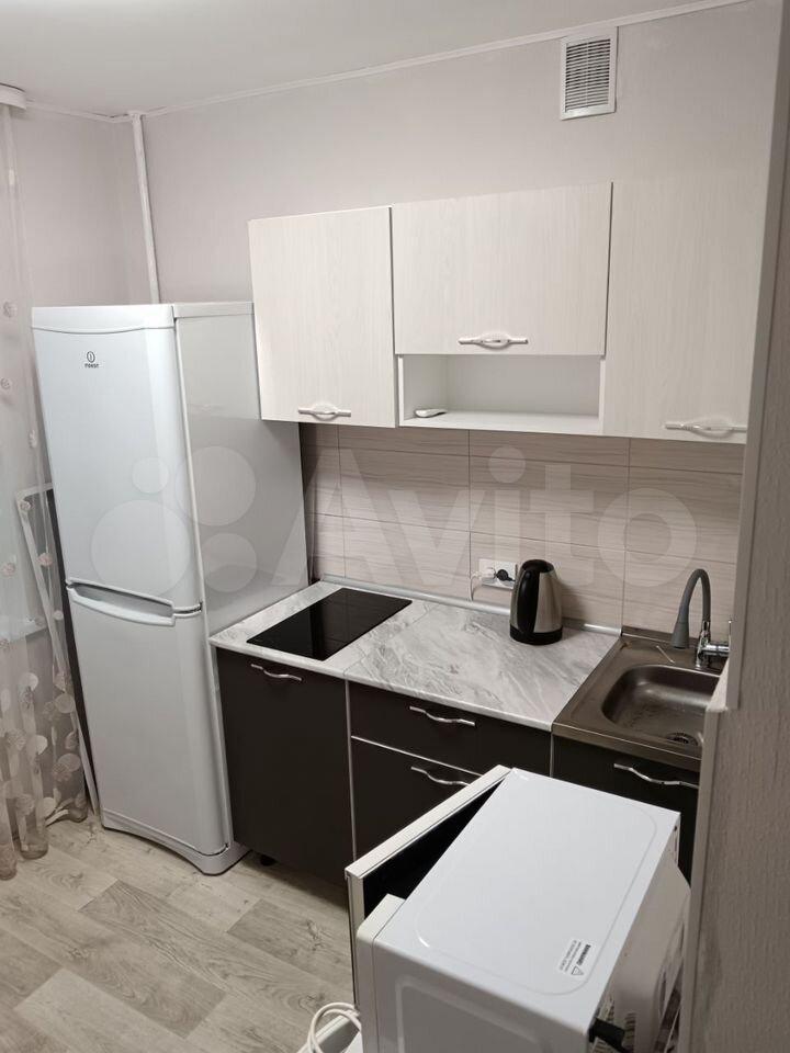 Из бытовой техники имеется: холодильник, микроволновая печь, электрическая варочная панель, стиральная машина автомат, чайник. Подведено оптоволокно для подключения интернет провайдера.