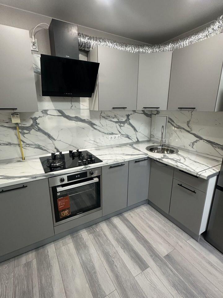 Бытовая техника: варочная панель, духовой шкаф, вытяжка, микроволновая печь, посудомоечная машина, холодильник, стиральная машина,