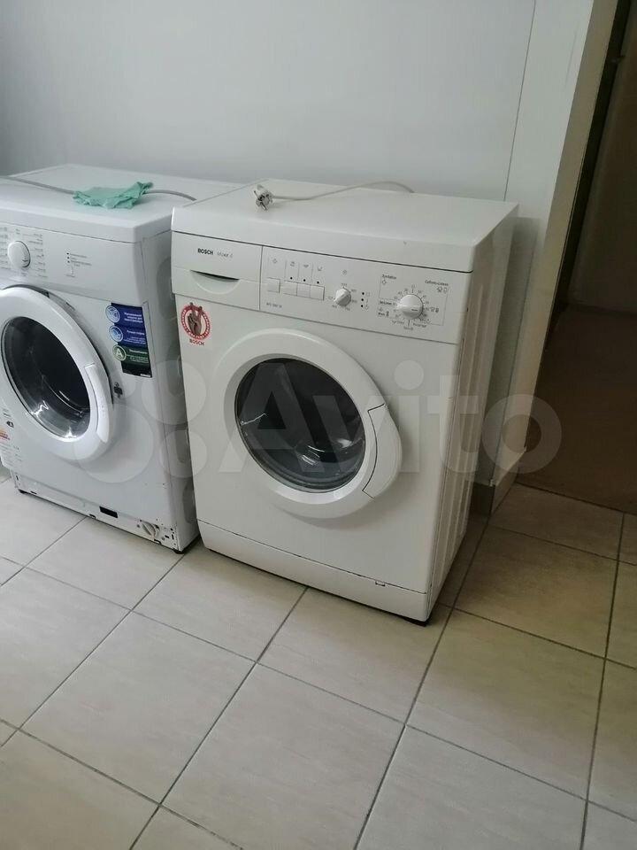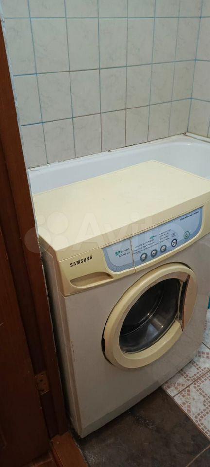 В комнате имеется : стиральная машинка, холодильник, диван, шкаф, плита.