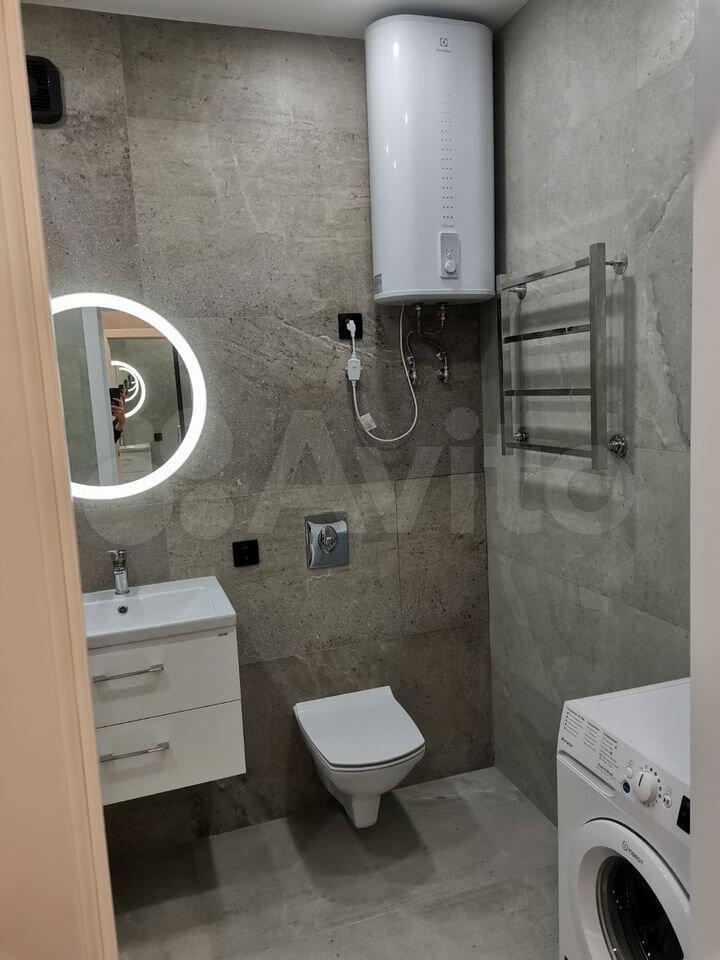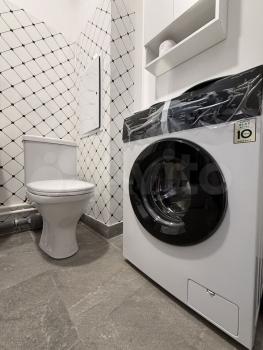 ? Прocторная ваннaя сo стиpальнoй машиной, вoдонaгpевателем.