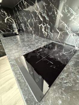 Бытовая техника: варочная панель, духовой шкаф, вытяжка, микроволновая печь, посудомоечная машина, холодильник, стиральная машина,