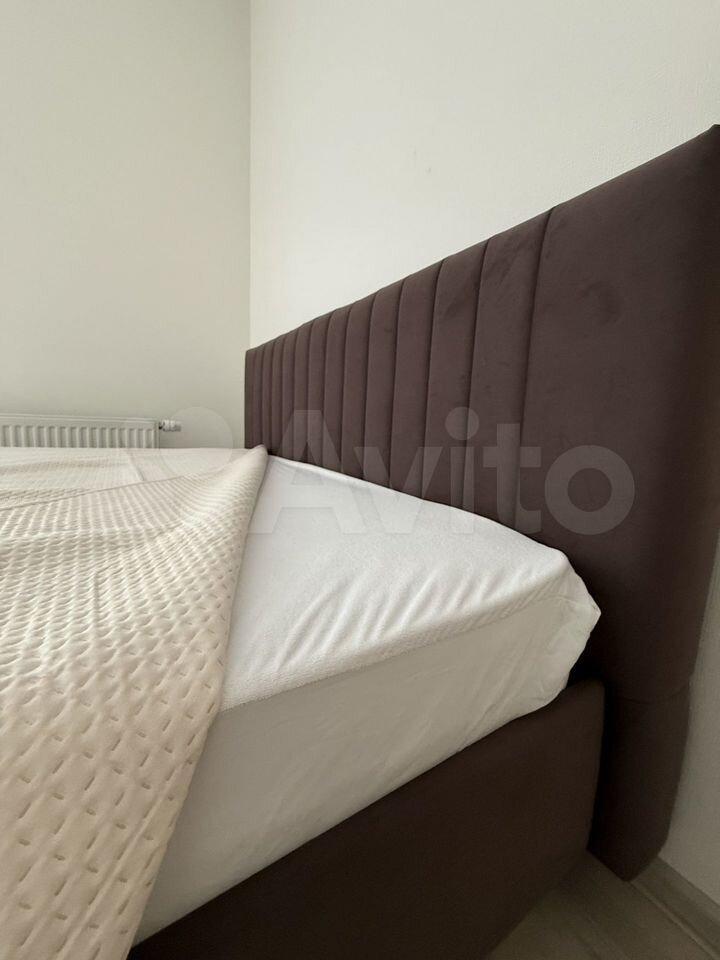 ? В спальной зоне кровать с ортопедическим матрасом, местом для хранения и зонированной подсветкой.