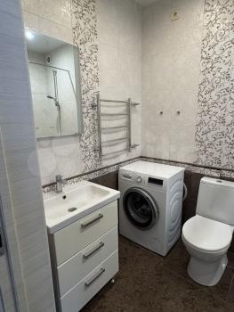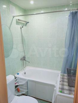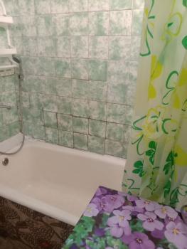 Санузел совмещенный, выполнен в спокойных тонах. В квартире запрещено курение, но можно проживать с детьми. Дом панельный, построен в 1986 году, оснащен мусоропроводом и пассажирским лифтом. Во дворе имеется детская площадка и открытая парковка.