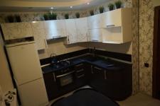 Просторная кухня ,оснащена необходимой бытовой техникой, включая холодильник ,микроволновку и плиту, стиральная машина.