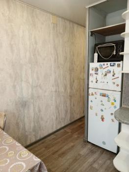 Кухня просторная, площадью 10 м², оснащена необходимой бытовой техникой, включая холодильник и плиту. Из мебели — шкафы и обеденный стол. В комнате установлен телевизор и удобный диван, а также вместительный шкаф для хранения вещей.