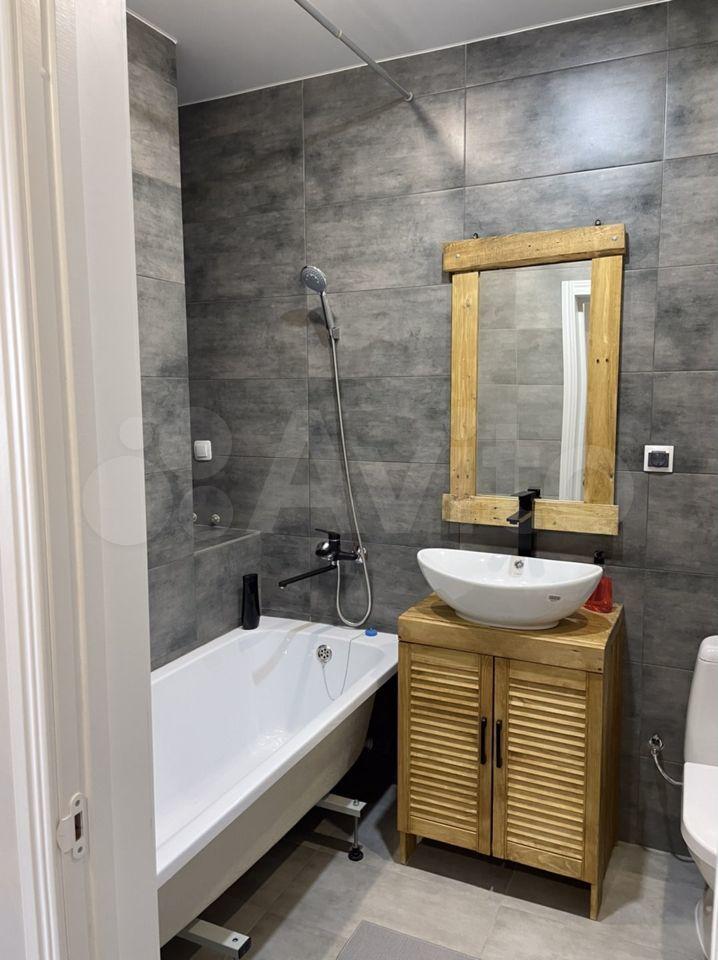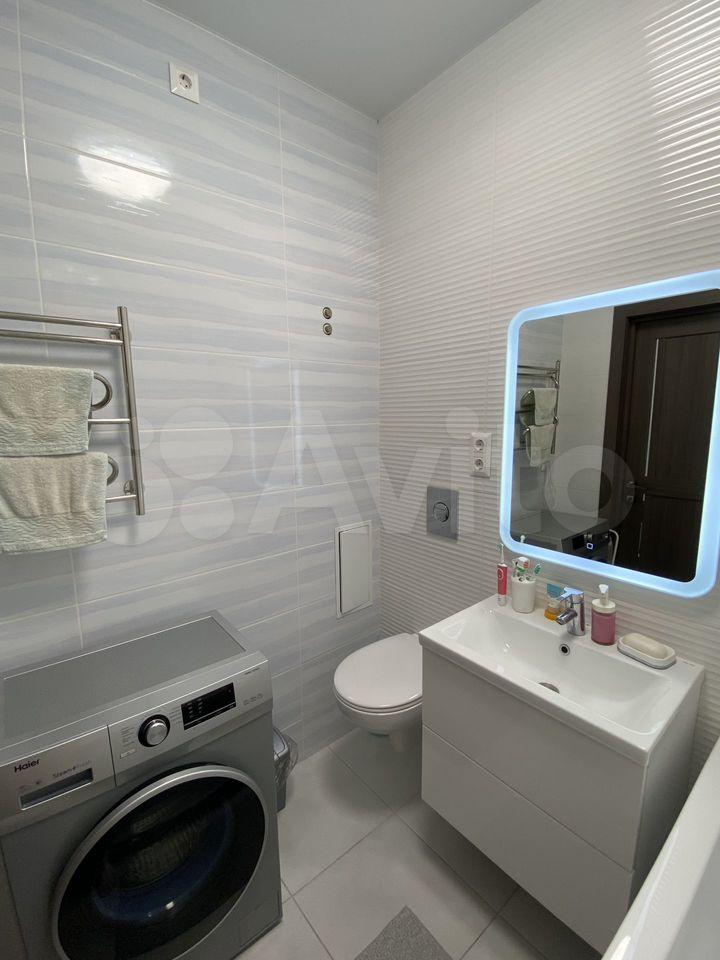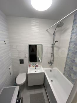 Санузел совмещённый, оборудован ванной, инсталляцией и стиральной машиной.