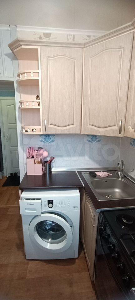 В квартире сделан косметический ремонт. На кухне и в комнате есть вся необходимая мебель, а также основные бытовые приборы: холодильник и стиральная машина. Санузел совмещённый, в нём есть ванна с настенным душем, что удобно для разных предпочтений.