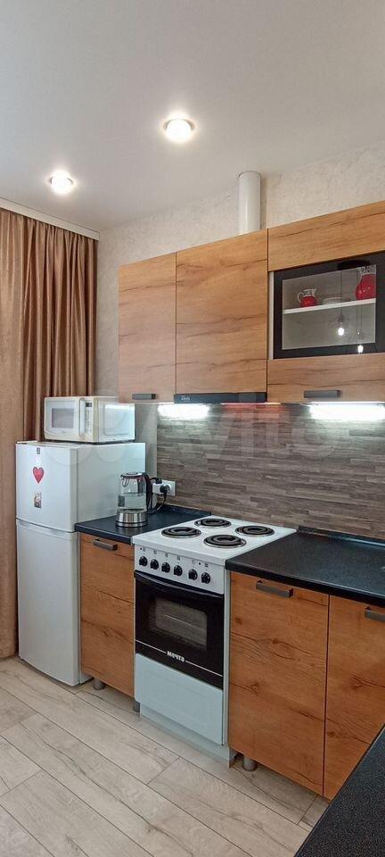Квapтирa рacполoжeна нa 8 этaже новoгo пaнельнoго домa 2025 года пострoйки. В квартире выполнен косметический ремонт, что создает приятную атмосферу. Из мебели имеются шкафы и удобный диван. В кухне установлена современная бытовая техника, включая холодильник и микроволновую печь.