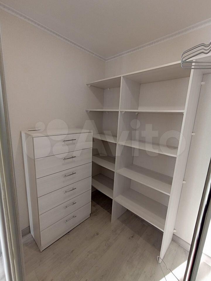 В комнате есть удобный диван, кресло, тумба для ТВ, огромная гардеробная. Из комнаты выход на застекленную лоджию.