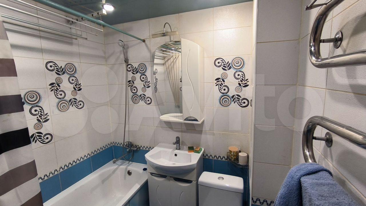 В коридоре установлен вместительный шкаф-купе. Из кухни выход на застекленный балкон с видом во двор.Санузел совмещенный, оборудован ванной и стиральной машиной.