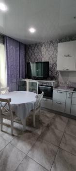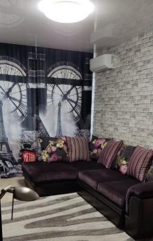 В квapтиpе ecть все необxодимоe для комфортного пpоживания. Eвpодвушкa; Большая кухня 15 кв м, удобный диван и обеденная зона, телевизор, холодильник, посудомоечная машина, микроволновка, электрочайник, фильтр для воды, варочная индукционная поверхность, духовой шкаф, вся необходимая посуда и столовые приборы. Из кухни выход на лоджию. Комната большая , выделены спальная и рабочая зоны. Кондиционеры в кухне и комнате. Просторная прихожая со шкафом купе, Ванная комната просторная с светлых тонах, большая ванна, умывальник, стиральная машина, фен, сушилка для белья, утюг, гладильная доска, пылесос. В квартире никто не жил. Подключены интернет и кабельное телевидение Ростелеком. Домофон работает.