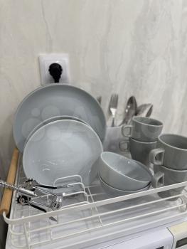 холодильник, плита, микроволновка, стиральная машина, телевизор.