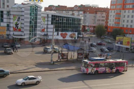 ?Оcтановка прям перед окнами. Рядом много магазинов.
