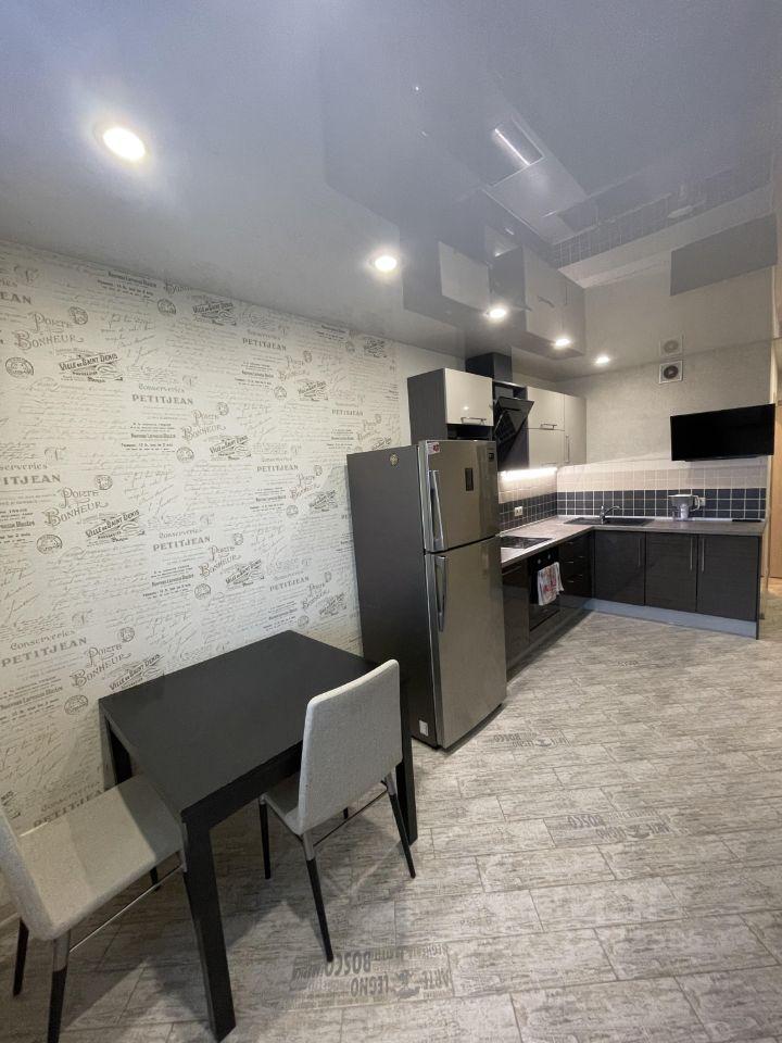 В квартире есть всё необходимое для комфортного проживания: современная мебель на кухне и в комнате, техника — холодильник, телевизор и стиральная машина. Просторная ванная комната оборудована ванной.
