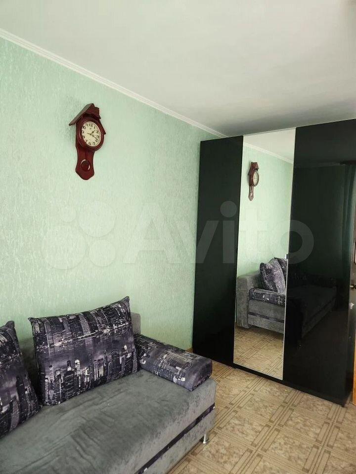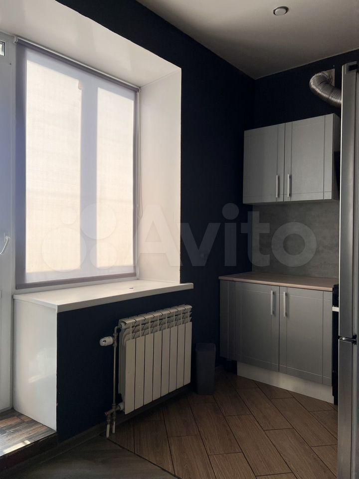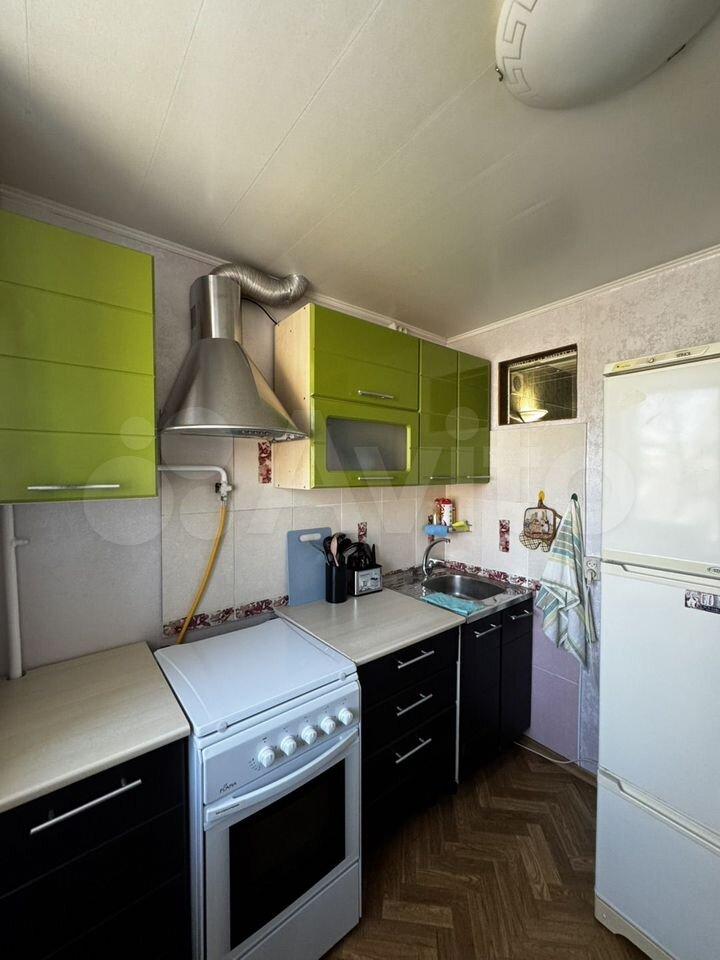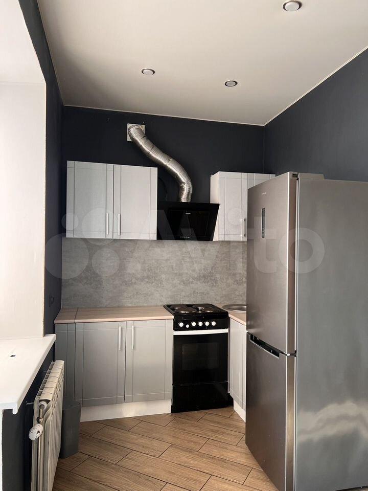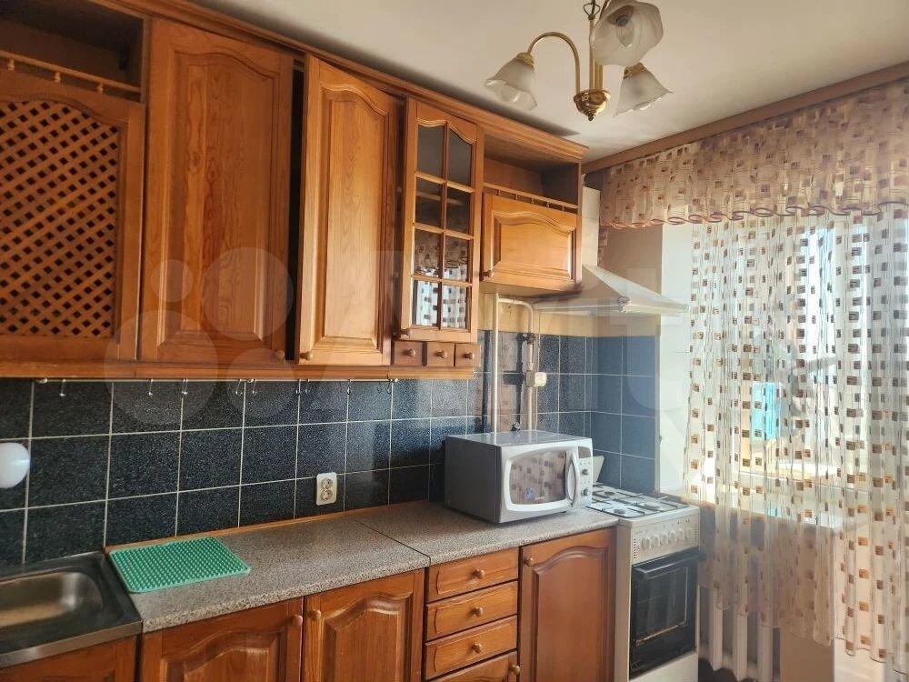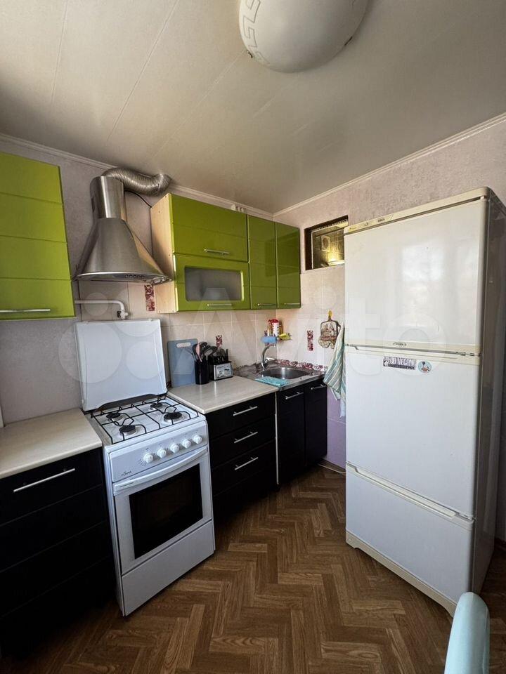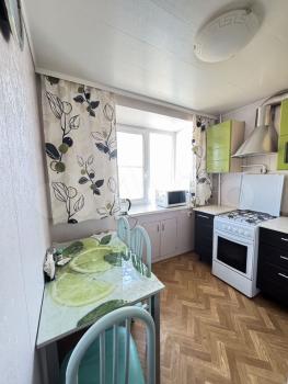 В квартире выполнен косметический ремонт. Просторная кухня площадью 7 м² оборудована необходимой техникой, включая холодильник. Из мебели имеются шкафы и диван. Санузел раздельный, оформлен современной плиткой.