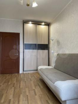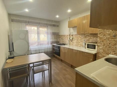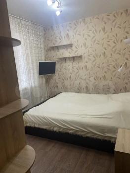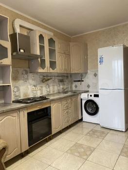 В квартире выполнен косметический ремонт. Из мебели имеются шкафы и диван. В кухне установлена современная бытовая техника, включая холодильник и плиту. Ванная комната совмещенная, оформлена в теплых тонах.