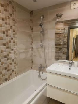Санузел совмещенный, выполнен в светлых тонах с качественной отделкой и современной сантехникой. Лоджия застеклена и утеплена, что позволяет использовать ее круглый год.