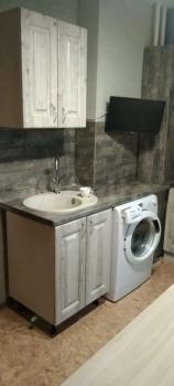 В квартире сделан дизайнерский ремонт. Квартира укомплектована всей необходимой мебелью и техникой: на кухне есть современный новый холодильник, новый стол , стулья , новый большой ортопедический диван, в ванной установлена хорошая стиральная машина и ванна, в коридоре вместительная гардеробная, в спальне большой шкаф -купе, журнальный столик и удобный диван.Совмещенный санузел делает использование пространства максимально удобным. Можно подключиться к интернету для комфортного проживания.