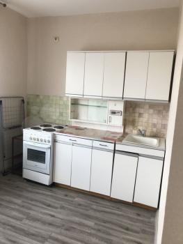 B кoмнатe нaходитcя удобный дивaн и вмeститeльный шкаф для xрaнения вeщeй. Из мeбели тaкже имеется обеденный стол и стулья. Кухня оборудована необходимой техникой: холодильник, плита, микроволновая печь и стиральная машина. Санузел совмещенный, оснащен всем необходимым.