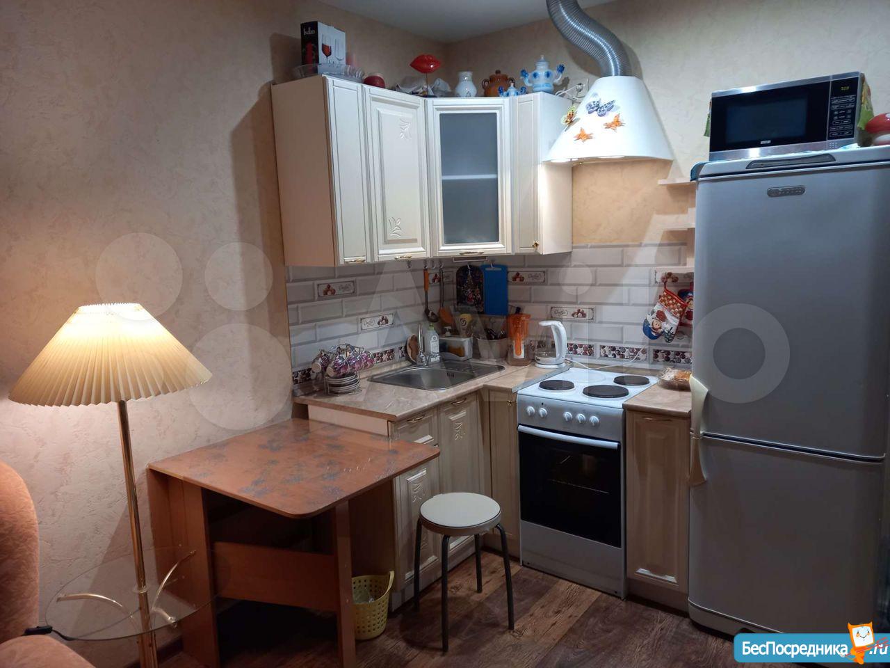 В квартире имеется все необходимое для проживания: холодильник, СВЧ, стиральная машина, шкаф, диван, кухонный гарнитур.