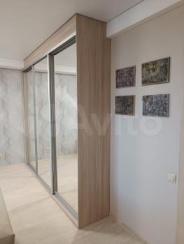Просторная прихожая с огромным шкафом-купе. В шкафу перекладина под одежду и гигантские полки под любые предметы.