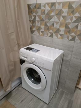 В квартире выполнен косметический ремонт, поэтому можно сразу заехать и наслаждаться комфортом. В комнате и на кухне есть вся необходимая мебель. На кухне установлены холодильник и посудомоечная машина. В ванной комнате установлена душевая кабина и стиральная машина. Дом оборудован грузовым лифтом.