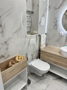 Новая современная евродвушка, в квартире есть вся мебель и бытовая техника. Гардеробная. Полы с подогревом. На первом этаже магазин. Остановка рядом. Большая парковка. Развитая инфраструктура. Оплата 30000 + ку и счетчики. Залог 20000. Собственник, не агенство.