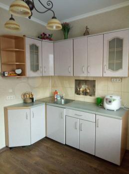 В квартире есть вся необходимая мебель и новая техника для комфортного проживания: угловой диван, телевизор, холодильник, стиральная машина, кухонный гарнитур, обеденная зона, стол, стулья, платяной шкаф и шкаф купе.