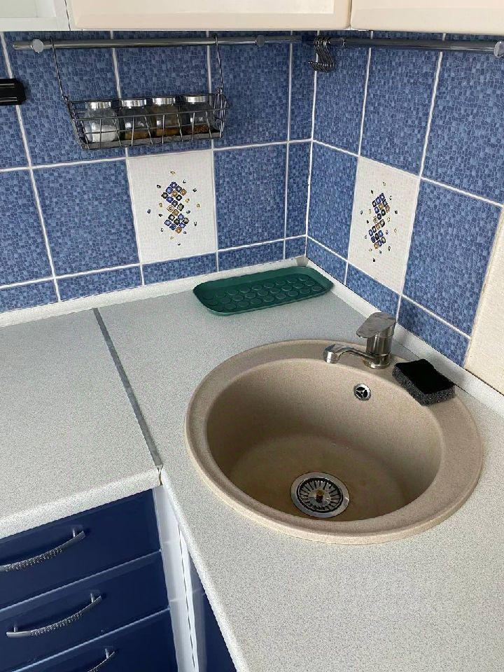 Кухня оснащена всем необходимым: холодильник, электрическая варочная панель, духовой шкаф, микроволновая печь, чайник, стиральная машина. Так же на кухне висит телевизор на стене.
