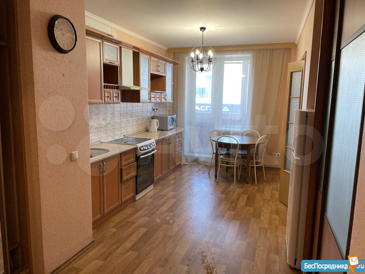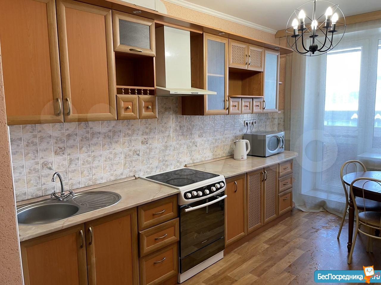 В квартире всё необходимое для проживания: диван, компьютерный стол, шкафы-купэ очень вместительные, холодильник, стиральная машина, телевизор, кухонный гарнитур со встроенной техникой и т. д. Балкон застеклён. Квартира чистая не сдавалась.