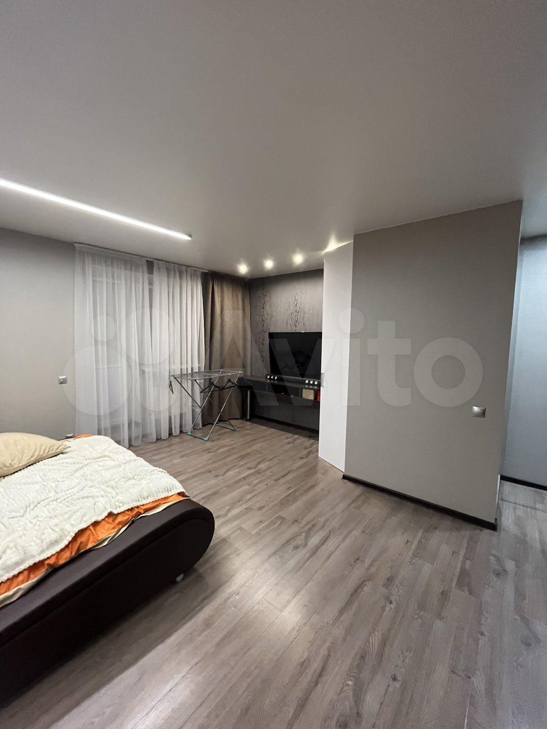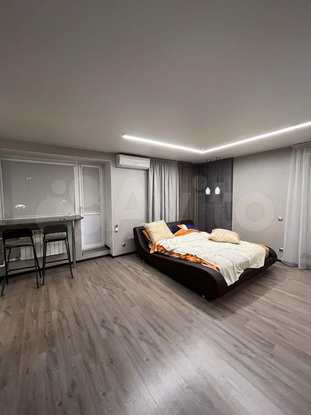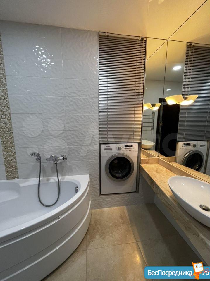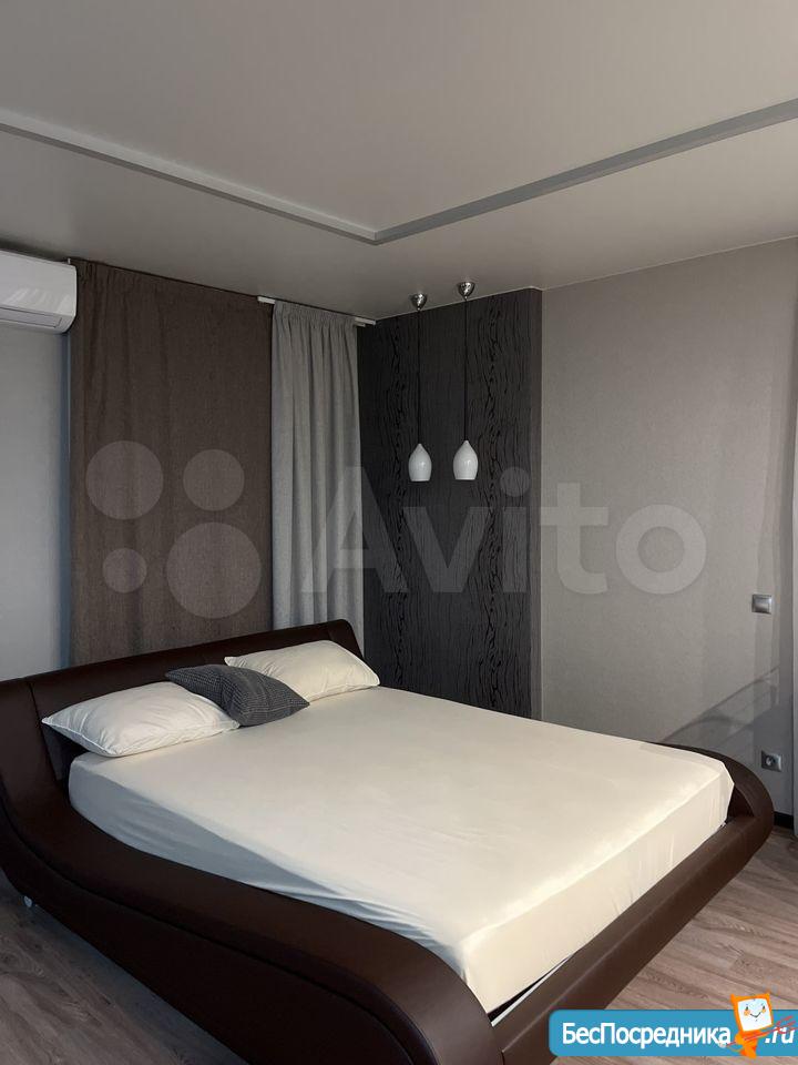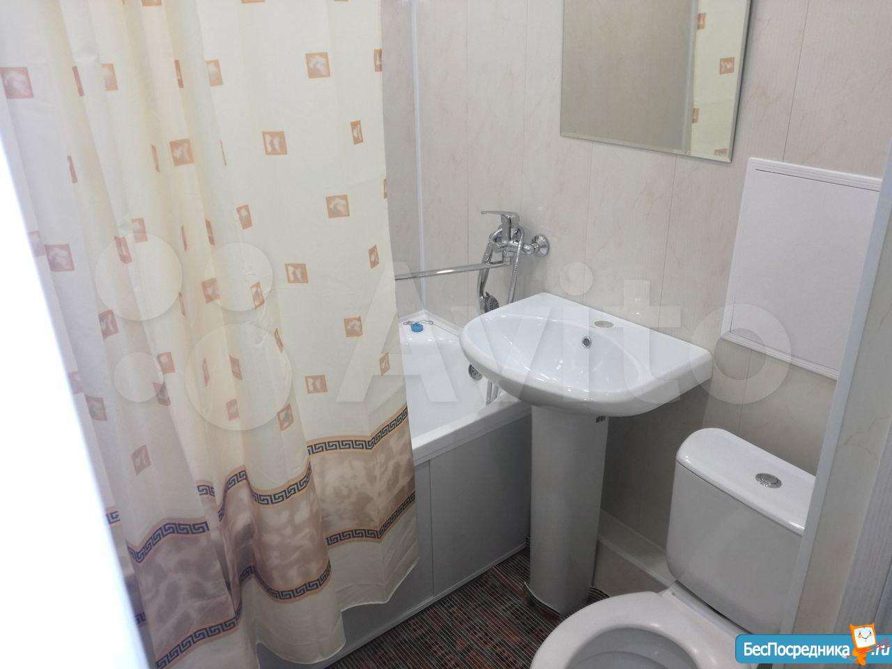 Плита, духовка, посуда,телевизор, холодильник, кондиционер, стиральная машинка, новая двухспальная кровать (Askona), подушки и одеяло, чайник. В шаговой доступности магнит, пятерочка, аптека, детский мир, цирк, до остановки 5 мин.