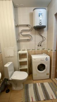Квартира однокомнатная. В комнате диван, шкаф. На кухне микроволновка, плита, холодильник, стол. Ванная стиральная машина, ванная.