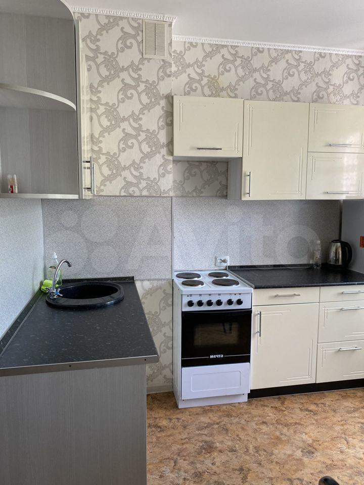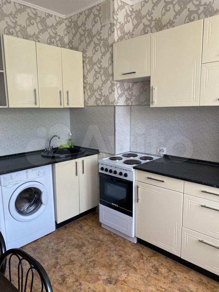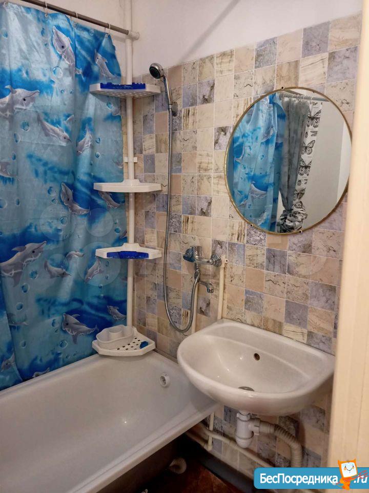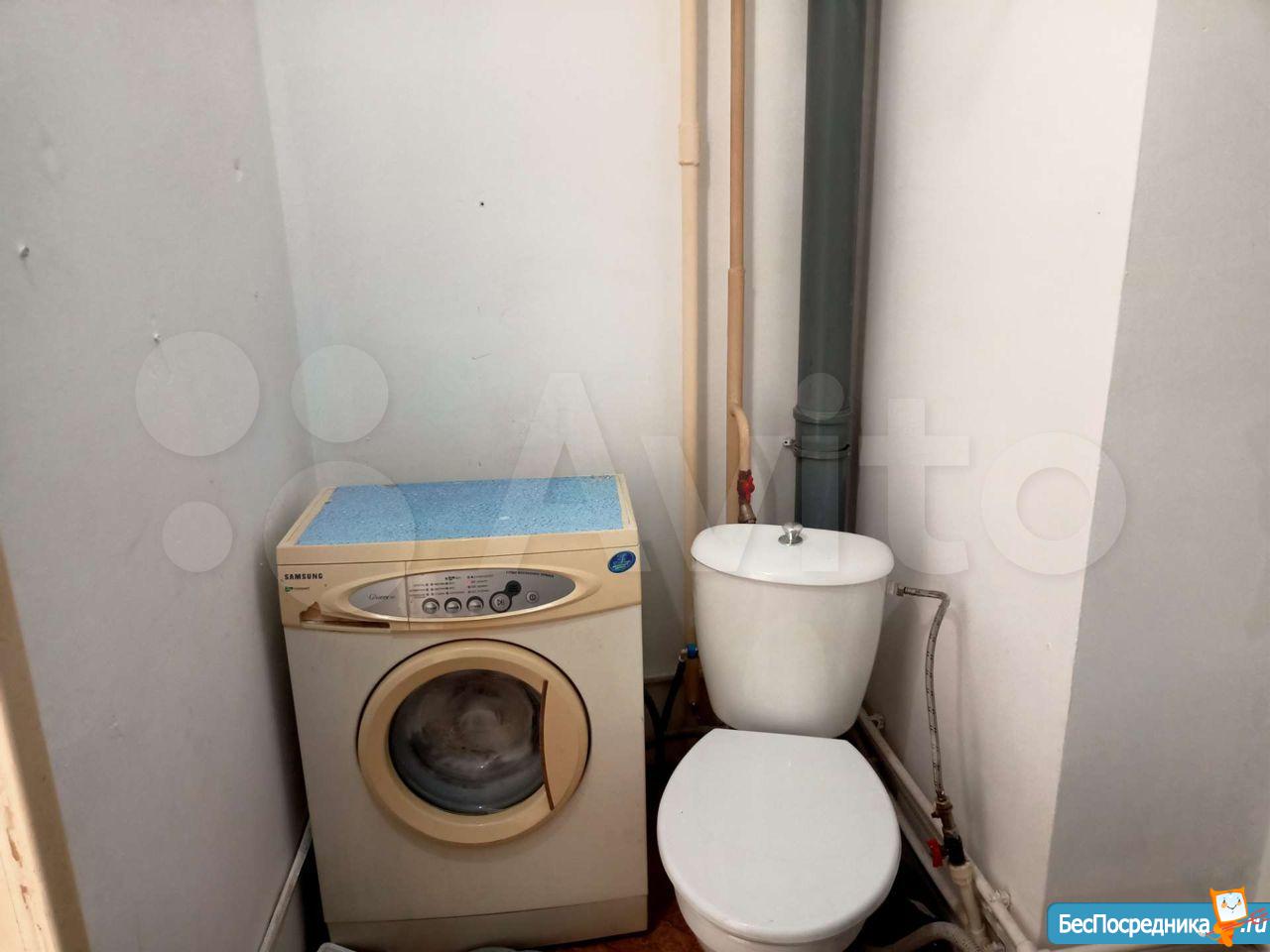 В квартире есть все необходимое для комфортного проживания: на кухне установлена мебель, есть холодильник и стиральная машина. В комнате также имеется мебель. Санузел совмещенный, с ванной.