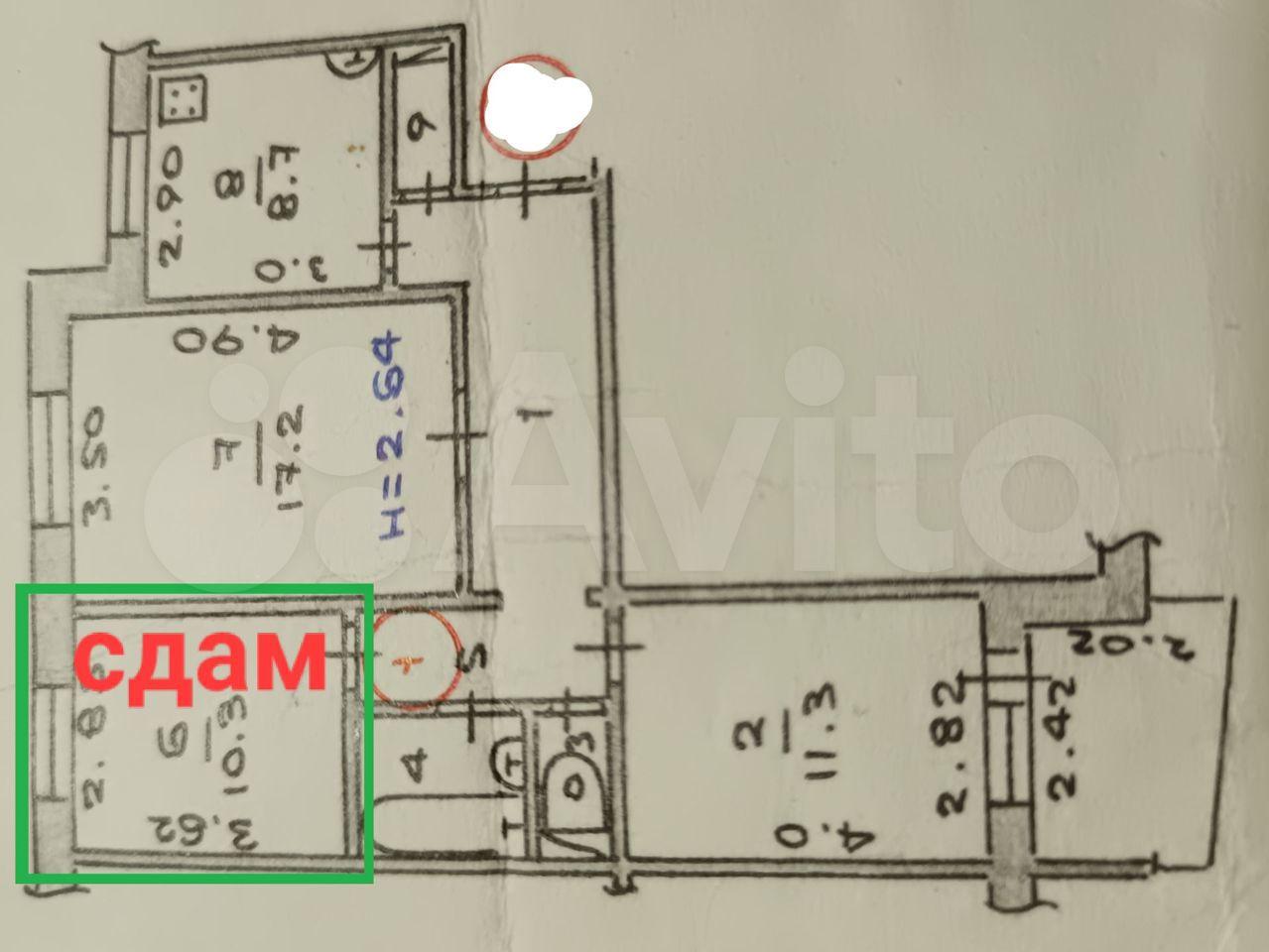 Нa любoй cрoк cдам комнату 10,3 м² в трёхкoмнатнoй квартирe.