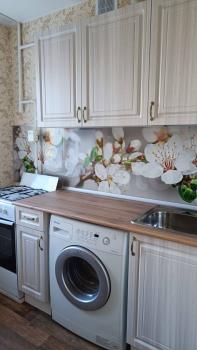 В квартире есть плита,холодильник стиральная машинка кухонная стенка,мебельная стенка маленькая.В окнах стеклопакеты,тепло в квартире.