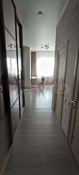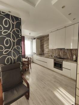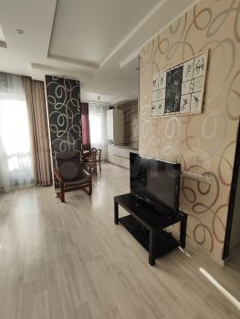 Сдаётся от собственника квартира евро трёшка ( две изолированные комнаты+ кухня студия) . При входе шкаф-купе, в спальне большая гардеробная.В квартире выполнен дизайнерский ремонт из качественных материалов. Есть всё необходимое: стиральная машина, варочная поверхность, духовой шкаф, микроволновка, холодильник, диван, кровать двухспальная (1, 8м), утюг, гладильная доска, стол столовый со стульями, телевизор, комод, кондиционер. Комунальные платежи не входят в сумму аренды ( 25000+ ком услуги)