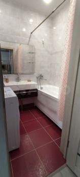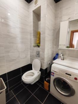 49 кв.метров, большая лоджия. В квартире оборудована кухня, есть небольшая спальная зона. Большая ванная, есть стиральная машинка-автомат, новый холодильник, в прихожей зоне вместительный шкаф-купе. В квартире легко дышится. Аккуратная, современная. Шикарная большая детская площадка! Зимой заливается каток для ребятни.