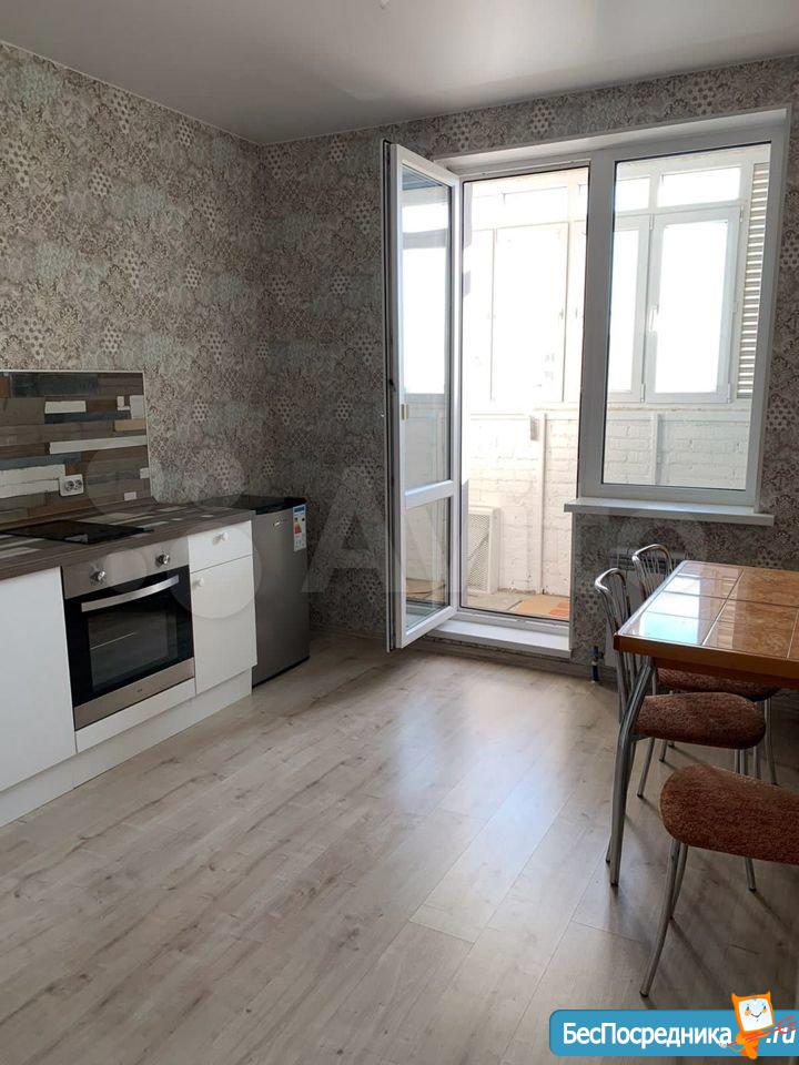 На кухне варочная панель на две секции, стол, 4 стула, духовой шкаф, холодильник, домофон. От собственника .