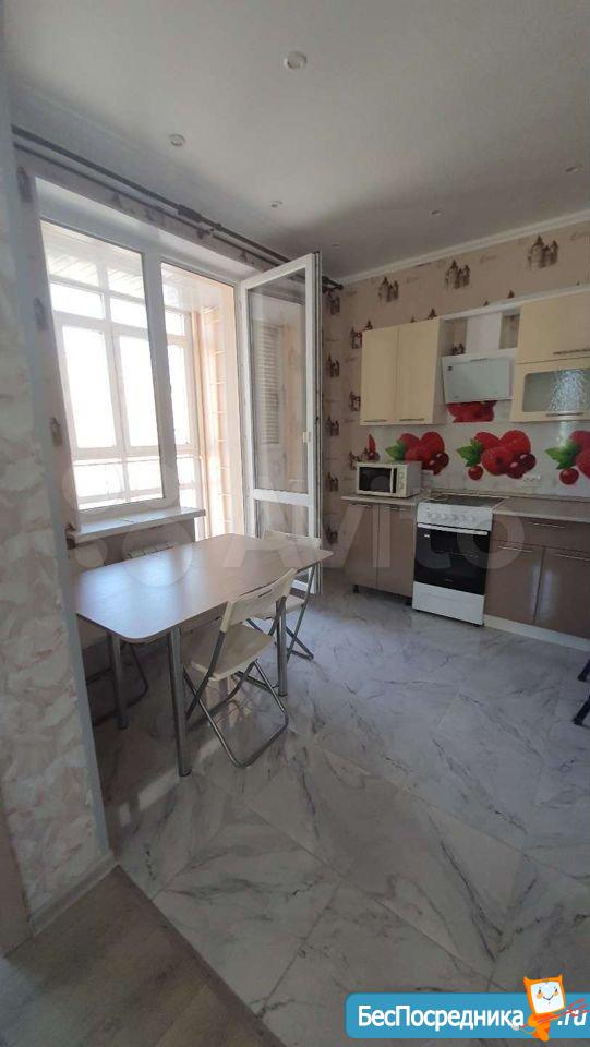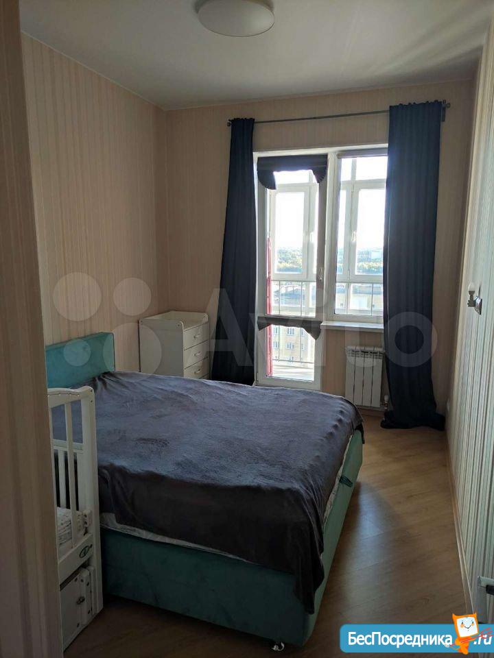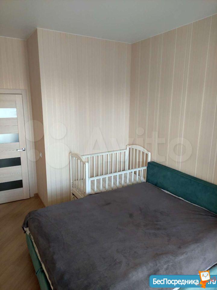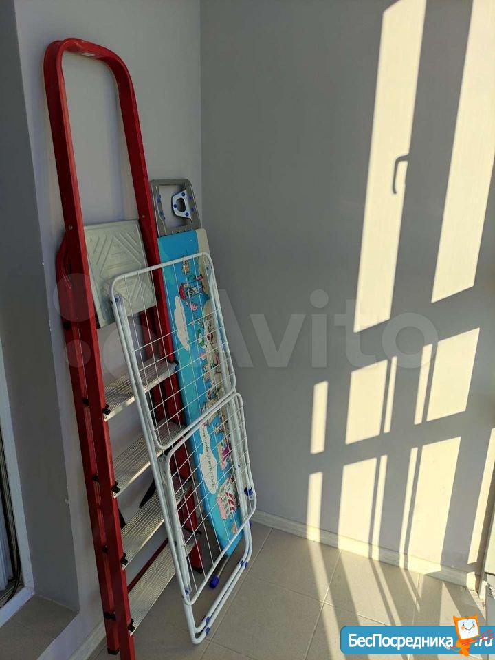 В зале раскладной диван. В спальне большая двуспальная кровать с ортопедическим матрасом и местом для хранения. Вместительный шкаф купе.Лоджия с панорамными окнами.