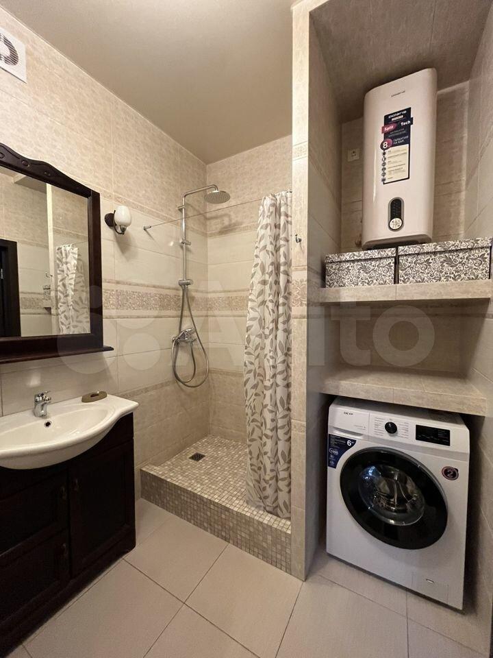 В ванной комнате тёплый пол, электрический полотенцесушитель, водонагреватель, новая стиральная машина.