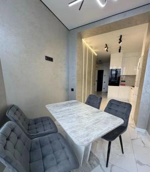 Внутри квартиры всё готово для комфортного проживания: стильный евроремонт, современная мебель как в комнате, так и на кухне. Из бытовой техники — холодильник, стиральная машина, телевизор и кондиционер, которые сделают вашу жизнь удобной. Ванная комната оборудована ванной