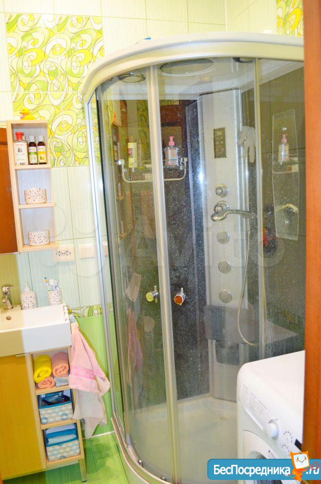 - в ванной - теплый пол, душевая кабина, стиралка