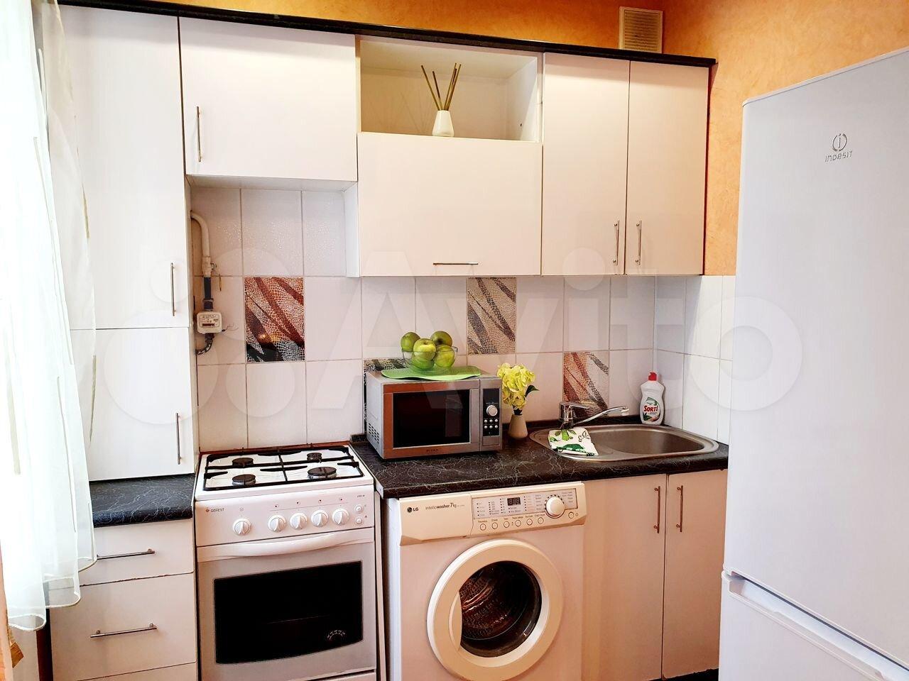 холодильник, плита, микроволновка, стиральная машина.