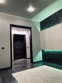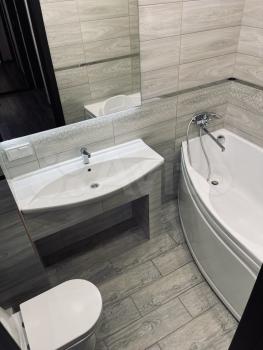 Квартира на 9 этаже с классным видом. В квартире сделан хороший ремонт, выглядит очень стильно и дорого. В квартире хорошая бытовая техника: холодильник, духовой шкаф, индукционная поверхность, стиральная машинка, чайник, телевизор смарт ТВ и сплит-система (кондиционер). Абсолютно новый, очень дорогой, большой ортопедический диван. Большая гардеробная, продуманная до мелочей. Ванная с дорогим дизайнерским ремонтом.