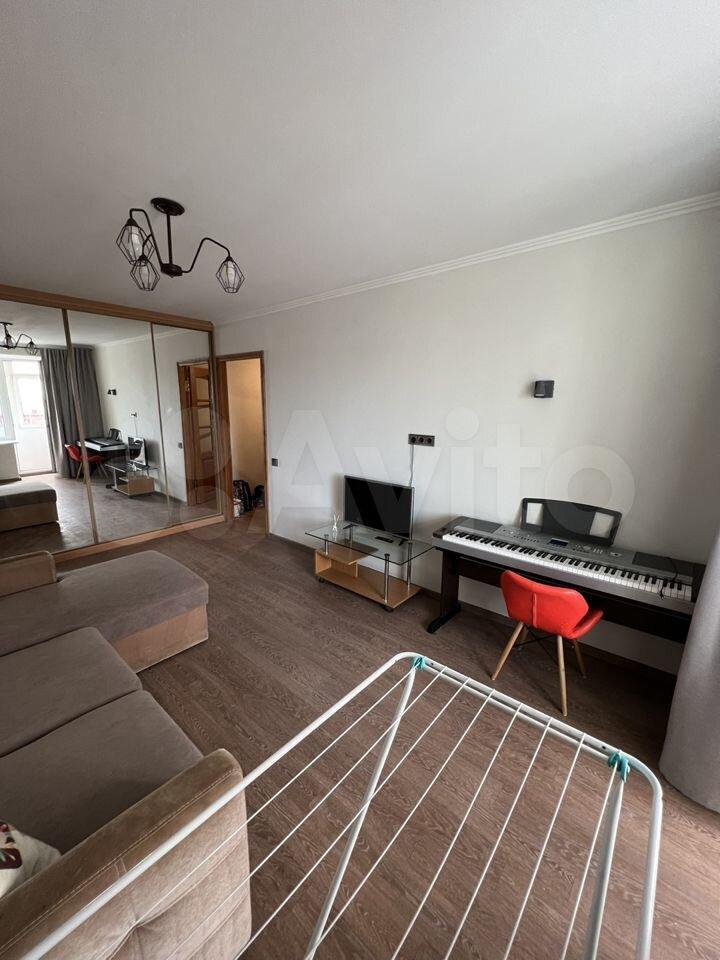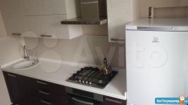 В квартире есть все необходимое для жизни: большая кровать, Шкафы купэ, кухонный гарнитур, варочная поверхность и духовой шкаф, холодильник, стол кухонный со стульями, телевизор, стиральная машина автомат.