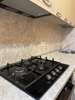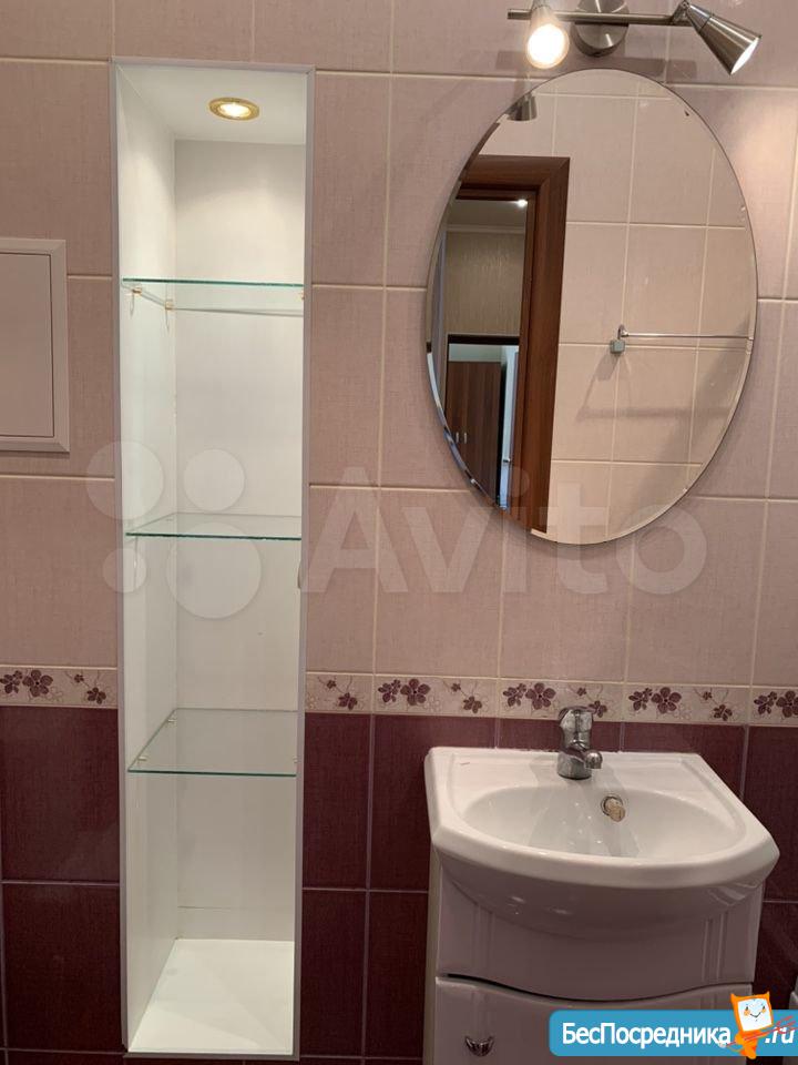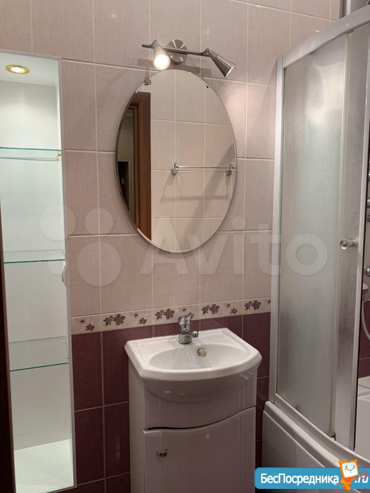В квартире есть всё : душевая кабина, стиральная машина автомат, холодильник, телевизор,шкаф, стол, диван, 2 кресла, стул.