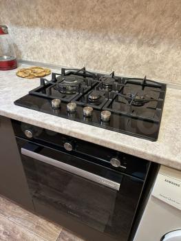 холодильник, плита, микроволновка, стиральная машина.